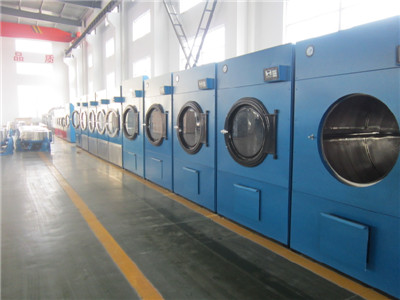 工業(yè)烘干機(jī)是洗滌機(jī)械中的一種,一般在水洗脫水之后,用來(lái)除去服裝和其他紡織品中剩余的水分。將洗滌后脫水過(guò)的布草衣物放置在滾筒內(nèi),然后烘干機(jī)的滾筒轉(zhuǎn)動(dòng)或者正反轉(zhuǎn)動(dòng),通過(guò)將熱風(fēng)吹過(guò)布滿網(wǎng)孔的滾筒使得布草衣物中的水分即使蒸發(fā)干燥并被迅速帶走。